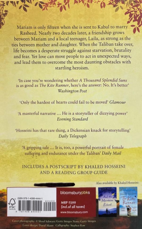 Mariam is only fifteen when she is sent to Kabul to marry Rasheed. Nearly two decades later, a friendship grows between Mariam and a local teenager, Laila, as strong as the ties between mother and daughter. When the Taliban take over, life becomes a desperate struggle against starvation, brutality and fear. Yet love can move a person to act in unexpected ways, and lead them to overcome the most daunting obstacles with a startling heroism.
